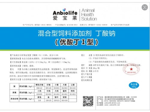 【功用】為小腸上皮細(xì)胞提供充足的能量,修復(fù)腸絨毛,促進(jìn)營養(yǎng)物質(zhì)的吸收;調(diào)節(jié)結(jié)腸pH值,促進(jìn)有益菌的生長,抑制有害菌的繁殖,起到預(yù)防腹瀉的作用;添加在飼料中作為飼料酸度調(diào)節(jié)劑酸化飼料,改善飼料風(fēng)味。